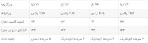 در ابتدا بهتر است مدل‌های مختلف تارا را در جدولی برای شما بیاوریم، تا قبل از صحبت در مورد آن‌ها، یک دید کلی در مورد تیپ‌های مختلف این خودرو داشته باشید.