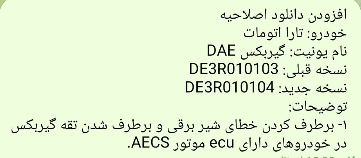 نسخه اخر نرم افزار گیربکس تارا اتومات با کالیبره GearBox DAE TARA (DE3R010104)